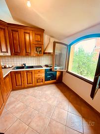 Cucina moderna e nuova con vista panoramica e accesso esterno