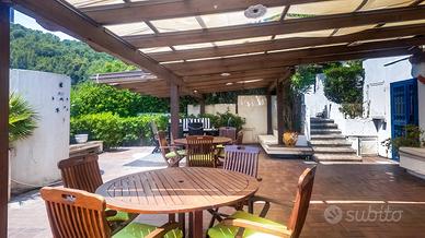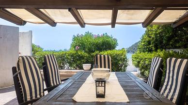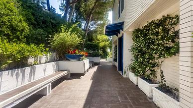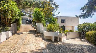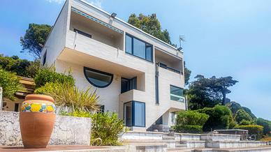La proprietà comprende la villa di circa 400 mq che si sviluppa su tre livelli e sorge al centro di un rigoglioso giardino mediterraneo, punteggiato da alberi ad alto fusto, terrazze panoramiche e portici eleganti per un totale di circa 1.200 mq che comprendono anche unampia area dedicata al parcheggio oltre ad un garage coperto di circa 50 mq. A completare la proprietà 480 mq di area pertinenziale composta dal viale di accesso con adiacente un giardino con ulivi. Un vero eden privato, dove architettura e natura si fondono in perfetto equilibrio, con affacci incantevoli sul mare e con un accesso diretto al mare.