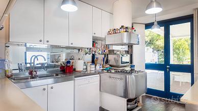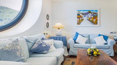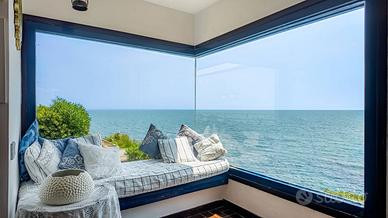 Al piano terra si accede attraverso due ingressi distinti: uno conduce a un accogliente salottino, laltro introduce alla luminosa zona giorno con cucina allamericana, in continuità con lesterno grazie a una bella veranda coperta. La zona living è caratterizzata da un incantevole bow window panoramico affacciato sul mare. Completa il livello un bagno di servizio.