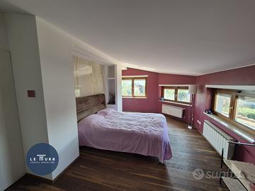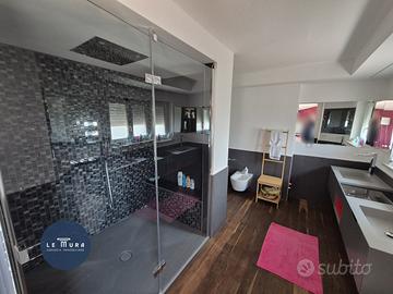Caratterizzata da una zona giorno di quasi 90 mq e una zona notte con 3 bagni e 3 camere da letto e una zona rialzata dove troviamo la camera padronale completa di bagno e due cabine armadio.