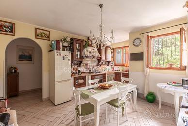 ' Piano terra: accogliente ingresso, cucina abitabile con angolo pranzo, ampio salone doppio con camino ideale per le serate invernali, funzionale locale lavanderia.