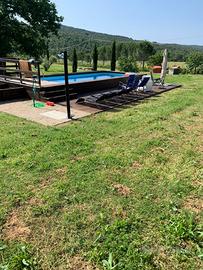 Nella campagna di Monterotondo Marittimo, non lontano dalle spiagge del Golfo di Follonica, si trova questa bellissima casa vacanze con piscina privata e ampio giardino, completamente recintata. La casa a due piani ha al primo piano un grande soggiorno con pianoforte, una grande cucina e un bagno. Il piano superiore è accessibile dall'interno tramite una scala a chiocciola e tramite una scala esterna. Tre camere da letto, una con bagno privato e un terzo bagno. Dal salotto si accede all'ampia veranda che si affaccia sul giardino per momenti di convivialità e relax. Grazie alla posizione della casa è possibile raggiungere rapidamente le località più famose della costa di Grosseto: Follonica 24 km, Punta Ala 46 km, Castiglione della Pescaia 48 km, ma anche da Livorno: San Vincenzo 28 km, il golfo di Baratti 29 km, separato dal promontorio di Piombino, 33 km, da dove partono le barche per l'isola d'Elba e le altre isole dell'arcipelago toscano. Altre mete per chi ama i borghi antichi sono: Campiglia Marittima 19 km, Populonia 31 km, Suvereto a soli 9 km. Puoi esplorare i dintorni della casa a piedi o in bicicletta. Questa è la casa ideale per vivere la vivacità delle località balneari e la quiete della campagna.
