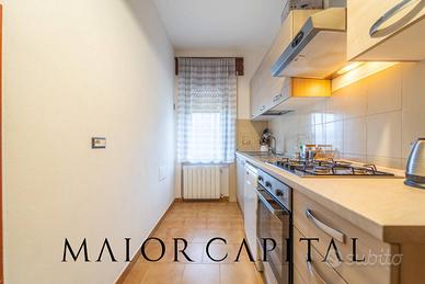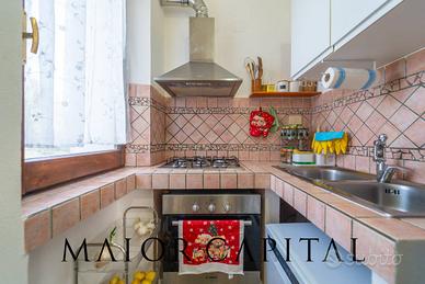 Al piano terra si sviluppa un appartamento composto da una luminosa zona giorno, cucinotto, due camere matrimoniali e un bagno finestrato con vasca.