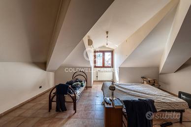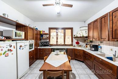 Disposta su tre livelli, la proprietà offre al piano rialzato un ampio soggiorno, cucina abitabile con accesso diretto al giardino, tre camere da letto, bagno e lavanderia. Il portico esterno permette di godere appieno del verde circostante e della quiete. Il piano mansardato include un balcone e un terrazzo, mentre al piano seminterrato si trovano un ampio garage, deposito e una cantina tradizionale. La villa dispone di scala interna, impianti automatizzati e perfettamente funzionanti, pozzo privato, allaccio alla rete fognaria comunale e gas di città. Infissi in vetrocamera garantiscono comfort termico e acustico. Il giardino, ben curato, è in parte ornamentale e in parte destinato alla coltivazione di frutta e ortaggi, dotato di impianto di irrigazione automatizzato.