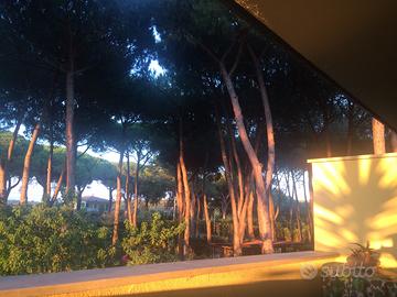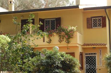 Villa bifamiliare, immersa nella caratteristica pineta del parco del Circeo. Sviluppata su due piani, dependance esterna con servizi, due gazebo in struttura, cantina, tettoia in legno per tre posti auto, veranda pavimentata che circonda la casa, una parte coperta per pranzare/cenare all aperto più struttura barbecue, forno a legna e lavandino, il tutto circondato dal verde e ombreggiato dai pini marittimi caratteristici della zona. La casa è stata colpita da un incendio e per questo va ristrutturato tutto il primo piano. Il pianoterra è invece stato rimesso a posto ed è abitabile. Originariamente era così strutturata: al piano terra grande cucina abitabile, triplo soggiorno con caminetto, camera e bagno; al primo piano tre camere da letto, due con balconi, e la terza con cabina armadio e bagno comunicante, più un altro bagno che serve le altre due stanze.