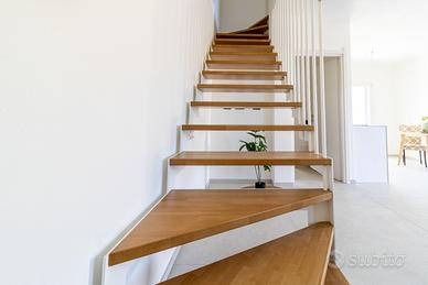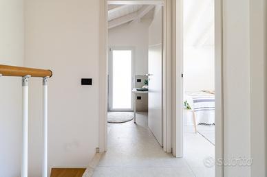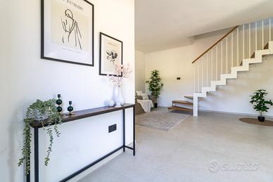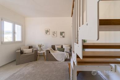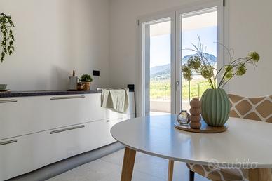 Villa in classe A4 - Pronta consegna Capoterra, in una nuova lottizzazione in forte sviluppo residenziale, all'interno del complesso "Moro Residence", proponiamo villa caposchiera di 113 m² commerciali, libera su tre lati, con giardino privato, veranda e posto auto interno alla proprietà. L'ingresso conduce alla zona living di circa 30 m², con soggiorno e angolo cottura in un ambiente ampio e ben distribuito. Le grandi aperture verso l'esterno creano continuità con la veranda pianellata, già predisposta per eventuale chiusura con infissi in vetro scorrevoli amovibili. Una soluzione che consente di personalizzare lo spazio esterno e ampliare ulteriormente la superficie fruibile dell'abitazione. Al piano primo troviamo tre camere da letto, di cui una matrimoniale. Gli ambienti risultano luminosi e ben proporzionati, valorizzati dal tetto in legno bianco a vista che dona profondità e calore agli spazi. Tre balconi garantiscono luce naturale e sfogo esterno; il secondo bagno, completo di piatto doccia, dispone di accesso diretto a uno dei balconi. La camera matrimoniale, ampia e regolare, consente arredi importanti senza compromettere la vivibilità. Le altre due stanze si prestano perfettamente sia come camerette sia come studio. Tra le caratteristiche tecniche troviamo infissi in PVC bianco con doppia guarnizione e vetrocamera basso emissivo, porte interne bianche tamburate e laminate antigraffio, impianto idrico realizzato con materiale Geberit e impianto elettrico completo di pannelli fotovoltaici dedicati a ogni abitazione, con inverter e quadri di protezione. Giardino su tre lati e posto auto scoperto con accesso esclusivo completano la proprietà. Una soluzione pensata per chi cerca una casa nuova, efficiente dal punto di vista energetico e pronta da vivere.