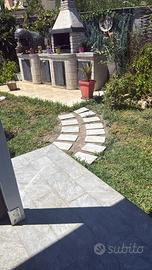 L'altra metà che circuisce la casa, Prato all'inglese con piante esotiche; con casetta in metallo porta oggetti.
