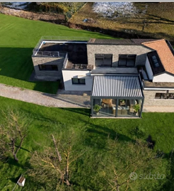 In vendita splendida villa moderna con vista Monviso, ampie vetrate, privacy e possibilità piscina.