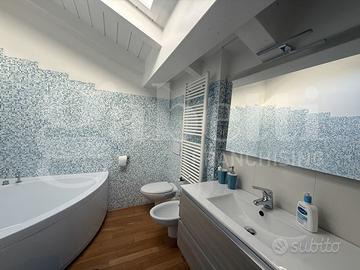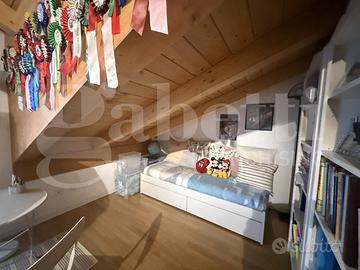 2 AMPIE CAMERE MATRIMONIALI CON BALCONATA + LOCALE DOPPIO SOTTOTETTO ( X STUDIO O ALTRA CAMERETTA) USCITE SU GIARDINO + BAGNO CON VASCA - TRAVI A VISTA BIANCHE E VELUX AUTOMATIZZATO