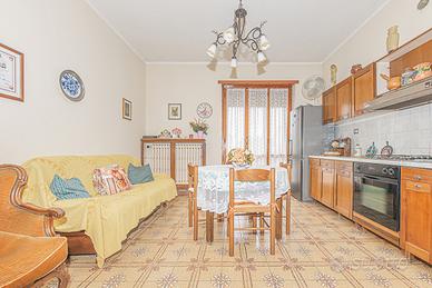 L'unità immobiliare al primo piano è composta da ingresso, sala, cucina, due camere e bagno, ed è dotata di balconi ampi .