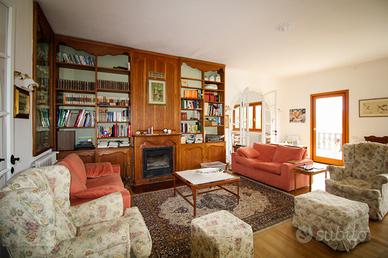 A pianterreno troviamo veranda, terrazzo, doppio soggiorno, sala da pranzo, disimpegno e cucina con camino.