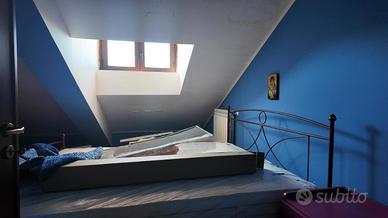 -Piano primo mq 64, composto da 3 camere da letto e 1 wcd. Da scala si accede al sottotetto di mq 64 composto da un unico grande ambiente mansardato con tetti spioventi.