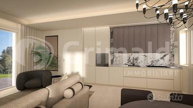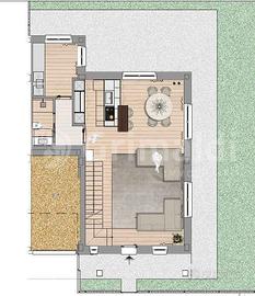 PIANO TERRA - Ingresso in un ampio e luminoso soggiorno, sala da pranzo, cucina, disimpegno e bagno per un totale di 90 mq. commerciali.