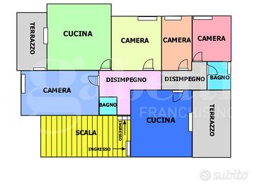 La soluzione si estende su una superficie abitativa complessiva di circa 130 mq attualmente suddivisi in due appartamenti, distribuiti come segue: