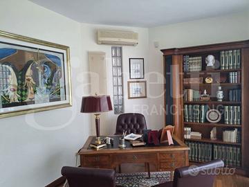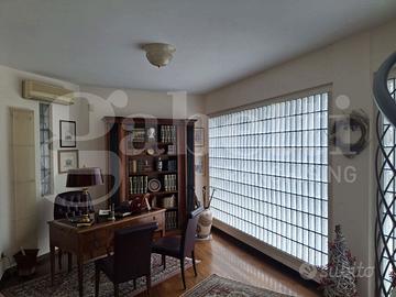 Al piano terra troviamo una luminosa zona studio, valorizzata da una parete in vetrocemento blindato che garantisce luce naturale e sicurezza.