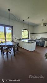 A completare la proprietà ampio giardino completamente recintato con accesso carraio motorizzato. Ottime rifiniture. Impianto di riscaldamento con caldaia a gas metano, suddiviso per zone. Tapparelle elettriche, serramenti di ultima generazione con vetrocamera, impianto di aspirazione centralizzato ed impianto di allarme perimetrale e volumetrico. Ape in corso.