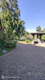 In piacevole zona residenziale molto tranquilla ed immersa nel verde, ma vicino al centro città , quindi comoda a tutti i servizi, proponiamo in vendita signorile villa indipendente completamente ristrutturata di recente, con abitazione disposta su due livelli e così composta: al piano terra ingresso, salone, spaziosa cucina con uscita su ampio terrazzo, studio, 2 camere di cui una adibita a locale guardaroba, bagno con vasca idromassaggio e doccia e particolare scala a vista di accesso al piano superiore con ringhiera in ferro battuto; al piano primo ampia zona living, tre camere da letto, bagno e tre ripostigli; al piano seminterrato vari locali uso cantina e deposito, centrale termica, bagno di servizio, lavanderia, autorimessa doppia e tavernetta con accesso diretto all'esterno vicino all'area cortile adibita a barbecue.