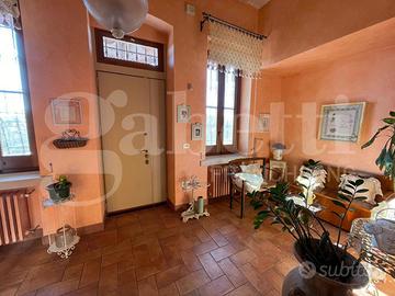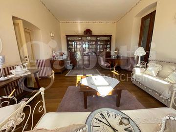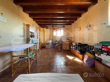 Sempre al piano terra si trovano tre ampie camere da letto, ciascuna caratterizzata da soffitti alti e pavimenti in cotto e legno di quercia, che conferiscono calore e stile agli ambienti.