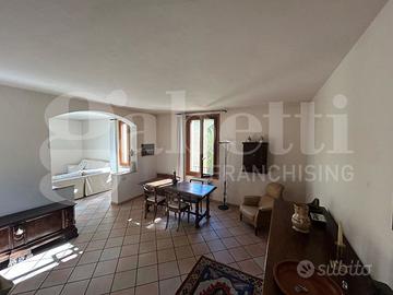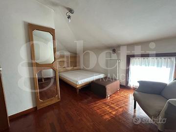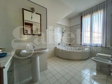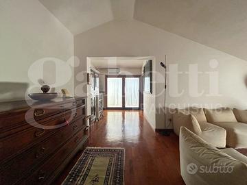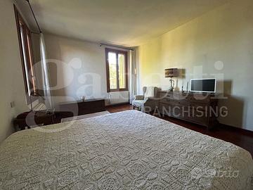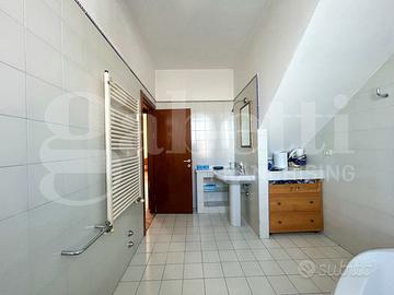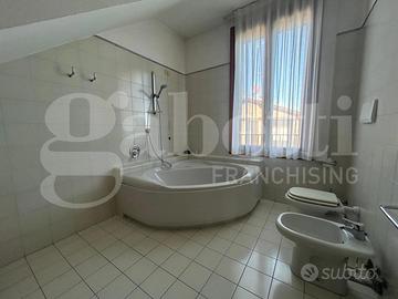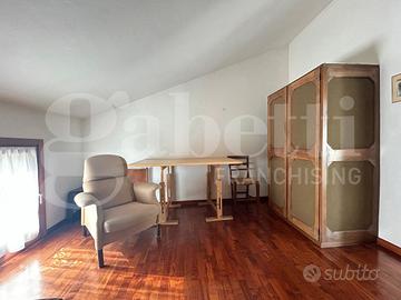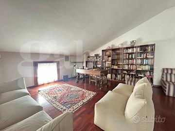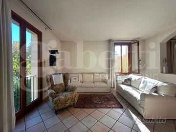 Situata in un contesto riservato e signorile, proponiamo elegante porzione di villa, caratterizzata da ampi spazi interni e impreziosita da un piacevole giardino privato, ideale da vivere appieno durante la stagione primaverile ed estiva. L'abitazione si sviluppa su due livelli, offrendo un'esperienza abitativa accogliente e ricca di personalità. Varcata la soglia, si viene accolti da un ampio salone, in armonia con una zona living separata, perfetta per creare ambienti dedicati al relax e alla convivialità. La cucina, abitabile e di generose dimensioni, rappresenta il cuore della casa. Il piano è completato da una confortevole camera da letto e da un bagno finestrato, garantendo praticità e autonomia degli spazi. Salendo la comoda scala interna si accede al secondo livello, più intimo e versatile. Qui troviamo un suggestivo studio open space, ideale per lo smart working o per coltivare le proprie passioni. La zona notte si completa con ulteriori due camere da letto e un secondo bagno. Il vero gioiello di questo livello è il caratteristico terrazzo ad asola. A completare la proprietà, un ampio giardino privato all'interno del quale è presente un locale deposito di proprietà, versatile e adatto a molteplici utilizzi, una pratica cantina e da un'ampia disponibilità di parcheggio interno, eliminando ogni stress logistico.