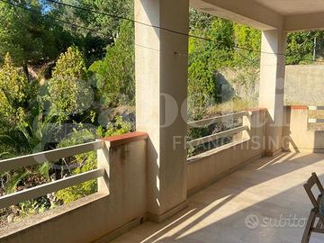 L'ingresso è su un ampio terreno con accesso carrabile, la villa si compone di due appartamenti con ingresso indipendente dal vano scala, posti al piano terra ed al primo piano, in buone condizioni interne. Al secondo piano troviamo una mansarda allo stato rustico con grandi terrazzi circostanti panoramici.