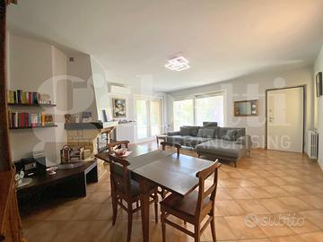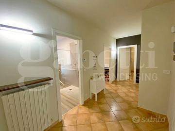 L'ingresso living conduce ad un ampio soggiorno luminoso, perfettamente integrato con la cucina abitabile, dotata di comoda dispensa/ripostiglio. La zona notte offre una suite padronale con cabina armadio e bagno privato, oltre a due camere da letto e un secondo bagno finemente rifinito.