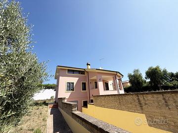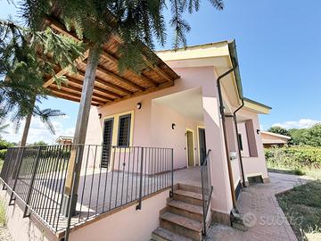 In contesto residenziale, proponiamo in vendita, splendida villa unifamiliare di recente costruzione. Disposta su tre livelli. Al piano terra: ampio salone, con cucina ed accesso a due porticati, camera matrimoniale e bagno. Al piano primo: due camere da letto, bagno e due balconi. Piano seminterrato: salone con angolo cottura, camera, bagno, ripostiglio ed un box auto di 20 MQ. Completa la proprietà: ampio giardino esterno con piante di ulivo ed ornamentali. Contattaci per saperne di più o fissare una visita sul posto!