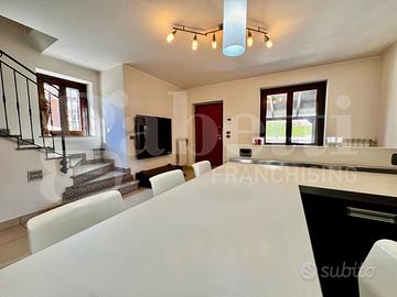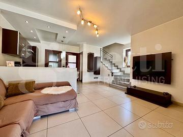 IN TRATTATIVA. Zona Campo Sportivo, proponiamo graziosissima porzione di villa bifamiliare edificata nel 2009 e rifinita con materiali in extra capitolato composta al piano terreno da soggiorno con cucina a vista ed uscita su terrazzo coperto, camera matrimoniale, servizio con vasca/doccia idromassaggio e balcone.
