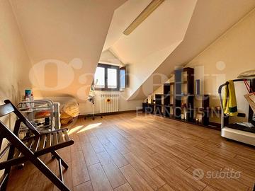 Mansarda con abbaini composta da disimpegno, ampia camera, cameretta e servizio.