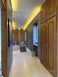 Tramite una scala interna con mancorrente in acciaio inox si accede al piano superiore, dove si sviluppa la zona notte: una camera matrimoniale con balcone privato e affaccio sul giardino, una spaziosa cabina armadio, una seconda camera da letto, uno studio con balcone ed un ampio bagno dotato sia di vasca idromassaggio che di spaziosa e comoda doccia.
