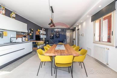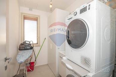 Al piano terra si apre un'ampia zona living e pranzo, ideale per momenti conviviali, separata dalla zona notte che comprende due confortevoli camere da letto, un bagno con sanitari sospesi e una pratica lavanderia. Gli infissi in vetro camera e gli oscuranti garantiscono elevata efficienza energetica e comfort, mentre i termosifoni e i due condizionatori assicurano un clima le tutto l'anno
