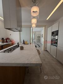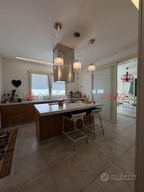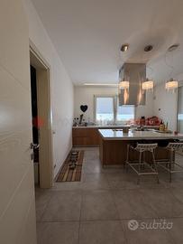 Con scala esterna accediamo all'appartamento del piano primo dove troviamo due grandi terrazzi abitabili, ingresso, salone doppio, cucina abitabile, disimpegno e tre grandi camere matrimoniali, tre servizi igienici e possibilità di