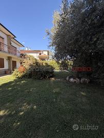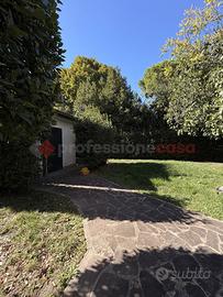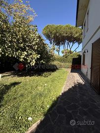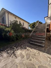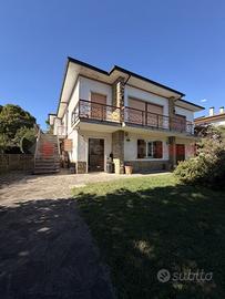 L'immobile del piano terra ha subito una recente ristrutturazione completa con materiali di pregio (impianti, infissi, rivestimenti). Si sviluppa su una superficie di 216 mq catastali dove troviamo ingresso con ampio salone doppio, disimpegno, cucina abitabile con lavanderia, altra salone-pranzo, due camere matrimoniali e doppi servizi. Dispone di vari accessi al bellissimo e curato giardino e al portico. Pavimenti in gres nella zona giorno e parquet in Teak nelle camere, infissi in legno-alluminio con vetrocamera, impianto di allarme, aria condizionata e solare termico e videocitofono Btcino.