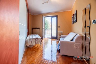 Tramite una comoda scala interna rifinita in pregiata pietra di Luserna si accede al primo piano mansardato, un livello versatile composto da un ampio disimpegno, una seconda zona giorno anch'essa spaziosa e con la predisposizione per un'eventuale parete cucina; questo piano include anche una camera da letto e un'ulteriore stanza sfruttabile come studio o sala hobby.