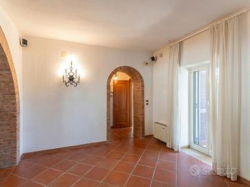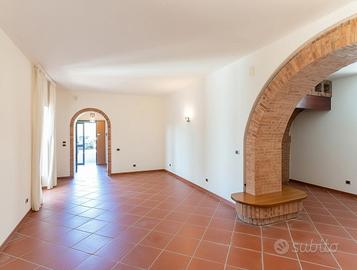 Rif.291125 Una Villa Che Fa Sentire Tutti A Casa, Anche Gli Ospiti Qui non si entra soltanto in una casa. Qui si entra in un modo diverso di stare al mondo. Appena varchi il cancello, il rumore resta fuori. Dentro c'è spazio. Spazio per respirare, per muoversi senza stringersi, per sentirsi finalmente comodi. La sensazione è quella di una casa che non chiede di adattarsi: è lei che si adatta alla vita di chi la vive. Il piano terra accoglie con naturalezza. Il camino acceso diventa il centro delle serate, quello intorno a cui ci si avvicina senza pensarci. Le voci si abbassano, il tempo rallenta. La cucina e la sala da pranzo sono fatte per stare insieme: tavolate lunghe, piatti che passano di mano in mano, amici che restano "ancora cinque minuti" e poi restano tutta la sera. Il cotto sotto i piedi, il legno, i mattoni: tutto contribuisce a far sentire subito a casa, senza sforzo. Salendo al piano superiore, la casa cambia tono ma non perde calore. Le camere sono ampie, silenziose, pensate per chi vive davvero gli spazi. Qui ci si sveglia con calma, si apre la finestra e si sente che la giornata può iniziare senza fretta. La lavanderia, il bagno, tutto è dove serve, senza complicazioni. Poi ci sono le due dependance. Ed è qui che la casa fa un passo in più. Gli ospiti arrivano e si sentono subito a loro agio, perché hanno il loro spazio, la loro indipendenza. Nessuna invasione, nessun imbarazzo. Oppure diventano piccoli alloggi autonomi, luoghi da vivere in libertà, ognuno con il proprio ritmo. All'esterno, il verde non fa solo da cornice: è parte della vita quotidiana. Quasi un ettaro di terreno che avvolge la villa, ulivi, castagni, una vigna. Qui si cammina senza una meta precisa, si esce solo per stare fuori, si ritrova un silenzio che non pesa, ma rilassa. La privacy è totale, lo spazio è reale. Questa non è una casa da guardare. È una casa da sentire. E quando lo fai, capisci che non è pensata per impressionare, ma per accogliere.