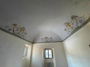 La peculiarità del palazzo è rappresentata dagli ambienti al secondo piano, completamente decorati a tempera sia sulle pareti perimetrali che sull'intradosso delle volte.