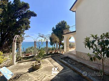 Villa indipendente situata tra Casal Velino e Pioppi (SA). Con una superficie di 180 mq catastali. La proprietà si sviluppa su tre livelli: Al piano strada troviamo doppio garage, al piano terra un ampio soggiorno, una camera da letto matrimoniale, sala da bagno e cucina abitabile. Salendo al piano primo vi è un'ulteriore camera da letto matrimoniale vista mare, una cameretta, una seconda sala da bagno e ulteriore soggiorno con terrazzo. L'immobile per le sue caratteristiche e per il doppio ingresso può essere facilmente frazionato in 2 unità completamente autonome. I terrazzi panoramici e le diverse aperture offrono una vista mozzafiato sul golfo di Velia, già bandiera blu ormai da 25 anni. Immersa nella tranquillità e circondata dal verde la proprietà è valorizzata dal giardino che si sviluppa su quattro lati garantendo privacy, luce naturale e ampi spazi all'aperto da vivere in ogni stagione. La posizione dominante sul mare regala un'atmosfera magica e rende l'immobile unico nel suo genere. L'opportunità perfetta per chi desidera vivere in un ambiente esclusivo, immerso nella bellezza della natura e con tutti i comfort a portata di mano.