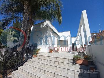In comoda zona, posizionata a ridosso di tranquilla villetta comunale e libera sui quattro lati, proponiamo in vendita interessante villa a Casarano. La soluzione dalle linee pulite e moderne si apre con ingresso in ampio e luminoso salotto dato dalle grandi vetrate. Il disimpegno divide la zona giorno composta da comodo soggiorno-pranzo con camino, cucinino con secondo camino (al momento adibito a armadio a muro), secondo ingresso per facilitare l'accesso allo studio, bagno completo con doccia e porta che permette l'accesso alla veranda retrostante. Mentre la zona notte leggermente rialzata si apre con camera padronale con balcone ideale per colazioni private, 2 confortevoli camere da letto una delle quali con balconcino e bagno completo con vasca. Al seminterrato si accede dall'interno e della veranda esterna, è suddiviso in garage e tavernetta, con 2 ripostigli e vano caldaia. L'esterno della villa abbiamo parte pavimentata e zona in aiuole piantumate, con apertura su Via Pola di un secondo accesso diretto su strada. Retrostante la soluzione si trova il giardino con piante ornamentali e alberelli da frutto e veranda ideale per pranzi e cene all'aperto. L' immobile offre ottimi spazi e possibilità di personalizzazione dei vari ambienti, inoltre ha impianto di termosifoni a metano, condizionatori e armadi a muro per un migliore utilizzo degli spazi interni.