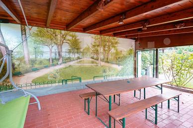 All'esterno uno splendido giardino di circa 450 mq, ricco di piante, fiori e alberi, impreziosito da un suggestivo laghetto che crea un angolo di grande fascino e relax, due comode tettoie attrezzate con tavoli e panche, ideali per trascorrere piacevoli momenti con la famiglia e gli amici per godersi un aperitivo o una cena all'aperto.