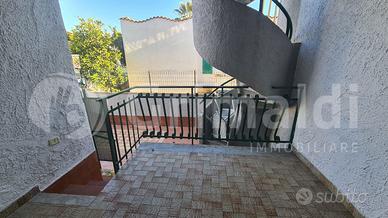 L'ingresso principale della villetta si apre su un grazioso giardino terrazzato, perfetto per trascorrere piacevoli momenti all'aria aperta. Una volta varcata la soglia, si accede direttamente al luminoso salone con cucina a vista, un ambiente spazioso e ben illuminato ideale per accogliere familiari e amici.