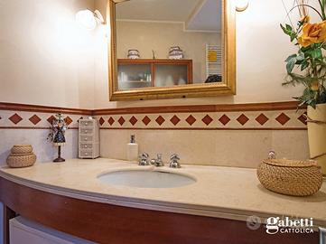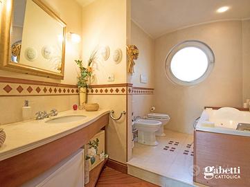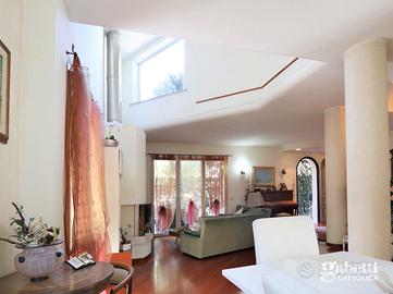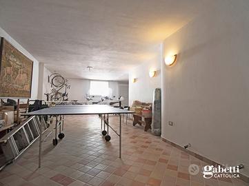 Disposta su due livelli con ampio interrato, garage di 60 mq e taverna con cucina, si ha la possibilità di ampliare la villa o di realizzare una seconda unità abitativa con ingresso indipendente.