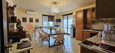 Le due soluzioni del piano primo sono raggiungibili dalla scala "condominiale" disposte in modo da offrire una tripla esposizione ad abitazione, e son composte di: Ampio e luminoso ingresso con accesso a terrazzo, soggiorno con cucina a vista, due camere e ampio bagno, per l'alloggio posto al lato ovest del fabbricato, il tutto distribuito su una superficie di circa 110 mq oltre la cantina al piano seminterrato.