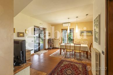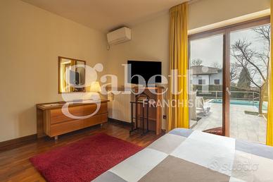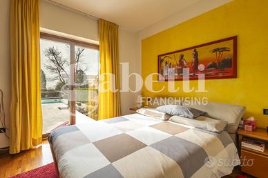 ESCLUSIVA VILLA INDIPENDENTE Nel verde e nella tranquillità di Cermenate, in posizione riservata e panoramica, sorge questa importante villa indipendente di circa 400 mq, una soluzione che coniuga eleganza, comfort contemporaneo ed efficienza energetica. Ristrutturata esternamente tre anni fa con cappotto termico, coibentazione del tetto e del sottotetto, sostituzione di tutti gli infissi ,pompa di calore e impianto fotovoltaico, la proprietà si presenta in classe energetica B garantendo autonomia gestionale e consumi ottimizzati. - POSIZIONE La sua posizione è particolarmente strategica: si trova infatti tra Milano e Como, entrambe facilmente raggiungibili in auto, rendendolo ideale per chi desidera vivere in un contesto più riservato senza rinunciare alla vicinanza ai principali centri urbani e alle loro opportunità lavorative e culturali. Apprezzata per la qualità della vita e l'atmosfera residenziale, offre tutti i principali servizi, scuole e collegamenti comodi. - DESCRIZIONE IMMOBILE Varcata la soglia, al piano terra si viene accolti da una splendida zona giorno ampia e luminosa, impreziosita dal camino che diventa il cuore della casa nelle stagioni più fredde. Le grandi aperture conducono direttamente al patio esterno, creando una naturale continuità tra interno ed esterno e regalando una piacevole vista aperta sul giardino e sul panorama circostante. La cucina è abitabile, spaziosa e funzionale, pensata per vivere appieno la quotidianità familiare. La zona notte si sviluppa armoniosamente sullo stesso livello e ospita tre camere da letto ben proporzionate. La suite padronale dispone di bagno privato en suite, mentre gli altri due bagni, rifiniti con gusto, servono comodamente il resto del piano. Due pratici ripostigli completano il livello, offrendo ulteriore spazio organizzativo. Il giardino, ampio e curato, avvolge la villa garantendo privacy e quiete; qui trova spazio una splendida piscina privata, ideale per rilassarsi durante la bella sta