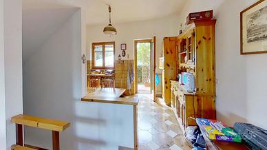 Al piano terra, un ampio salone con camino accoglie gli ospiti, mentre la cucina abitabile invita a momenti di convivialità.