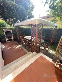 Scopri questa affascinante porzione di villino capo schiera angolare, situata in una zona residenziale tranquilla e ben servita. Con un giardino libero su tre lati, questa casa offre spazi esterni ideali per il relax e la convivialità.