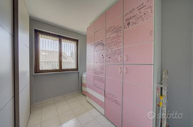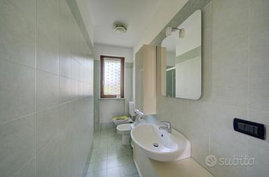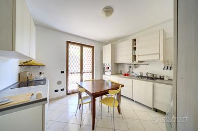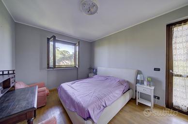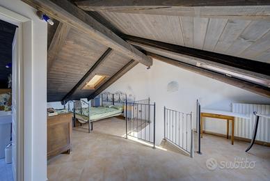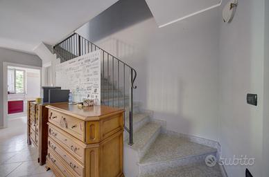 La villa è composta, al piano terreno, di soggiorno, ampia e luminosa cucina con accesso diretto al porticato, bagno; al primo piano grande camera, altra camera, bagno e studio con accesso a terrazzo coperto; al piano sottotetto un ampio locale uso sgombero ben rifinito; infine al piano interrato, anch'esso collegato con scala interna, tavernetta, lavanderia, bagno, due locali cantina e dispensa, nonché autorimessa.