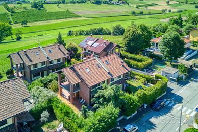 In recente villaggio in cima alla collina degli Airali (fronte castelli Montaldo e Pavarolo) villa libera tre lati esposta ad Est, Sud ed Ovest, servita dalla Strada della Rezza, panoramica e comoda alla Città di Torino e Chieri.