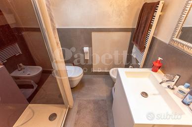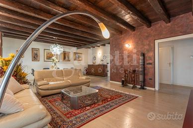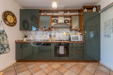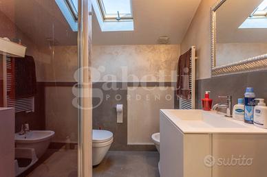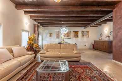 Dal piano primo una enorme zona living con cucina separata, uno ampio studio e al piano superiore l'estetica e il wellness sono garantiti. La matrimoniale gode di un bagno in camera con idromassaggio e sauna, Al servizio delle due camere il terzo bagno con doccia. Sul retro comodo magazzino, patio e giardino privato piantumato.