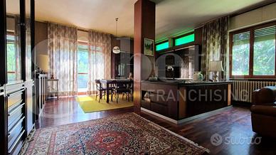 In zona Villetta, per la precisione nel piacevole contesto di Via Flaminia, proponiamo villa indipendente, libera su 4 lati. Internamente la villa è caratterizzata da finiture originali, con pavimenti in ceramica nella cucina e nei bagni e parquet nelle camere da letto e nei soggiorni. Attualmente la soluzione, di generosa metratura, si compone di due diversi appartamenti, utilizzabili da due distinti nuclei familiari; al piano rialzato troviamo il primo appartamento, con ingresso in corridoio che conduce al doppio salone con zona pranzo, la quale gode di accesso ad un'ampia terrazza. Troviamo poi una cucina abitabile, un bagno finestrato completo di doccia e di vasca, e due camere da letto matrimoniali. Il primo piano, invece, è composto da doppio salone con zona pranzo ed accesso alla seconda terrazza della villa, cucina separata ed abitabile, una camera singola ed una matrimoniale, ed un bagno finestrato e anch'esso completo di vasca e doccia. Il terzo ed ultimo piano è costituito da una mansarda abitabile, già provvista di bagno finestrato, due camere matrimoniali e zona open-space soggiorno/cucina, con il terzo terrazino privato. Per concludere, la soluzione è provvista di un box auto singolo, taverna, cantina e zona lavanderia, al piano seminterrato, ed un ampio giardino privato.