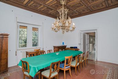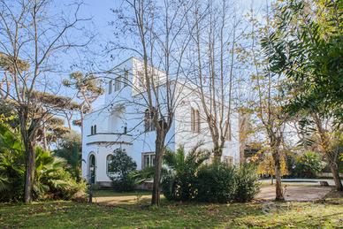 Fregene, più precisamente in Viale della Pineta di Fregene, immersa in un contesto naturalistico, a pochi passi dal mare, circa 300 mt, e dalla pineta, proponiamo la vendita di una villa unifamiliare dei primi del '900 in stile liberty con ascensore, di circa 600 mq con 2.500 mq di giardino, disposta su tre livelli fuori terra, dotata di doppio ingresso, uno padronale e l'altro secondario per la servitù. Attraversando l'ampio portico, al piano terra si ha un ampio ingresso che porta al salone doppio e un salotto entrambi con soffitti affrescati, una sala da pranzo molto luminosa con soffitti a cassettoni, cucina abitabile e doppi servizi. Attraverso una scala, o l'ascensore, saliamo al primo piano composto da 4 camere matrimoniali, doppi servizi e un ampio terrazzo. Al secondo ed ultimo piano troviamo una camera con esposizione a 360°, un servizio e un terrazzo perimetrale panoramico con vista sul mare. La proprietà circondata da giardino con piscina, che permette di creare spazi esterni esclusivi, ideali per godere appieno della bellezza della natura, è dotata porta blindata, finestre in alluminio con tapparelle in PVC e inferriate, soffitti affrescati, pavimenti d'epoca. La quadrupla esposizione sul giardino la rende unica nel suo genere e luminosissima. Ideale per chi vuole un'oasi di pace circondata dal verde a pochi minuti dal mare e ottima per uso investimento come attività ricettiva. Prezzo di vendita € 1.700.000,00