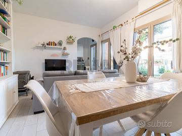 Completa la proprietà un comodo giardino con entrata indipendente carrabile, dotato di impianto di irrigazione collegato con un pozzo con autoclave ristrutturato nel 2022.